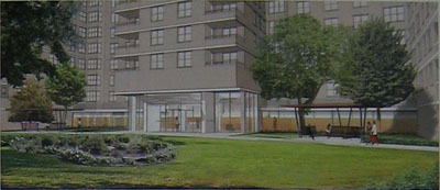 DESIGN #3 - 1100 - EXTERIOR VIEW OF MAIN ENTRANCE FROM STREET